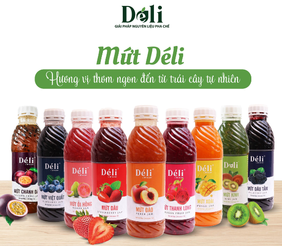Déli cung cấp một loạt các hương vị trái cây phong phú. Khách hàng có thể tìm thấy các loại mứt trái cây như xoài, chanh dây, đào, việt quất, ổi hồng và nhiều hương vị khác. Sự đa dạng này mang đến cho khách hàng nhiều lựa chọn và trải nghiệm mới mẻ để làm phong phú thực đơn của quán.