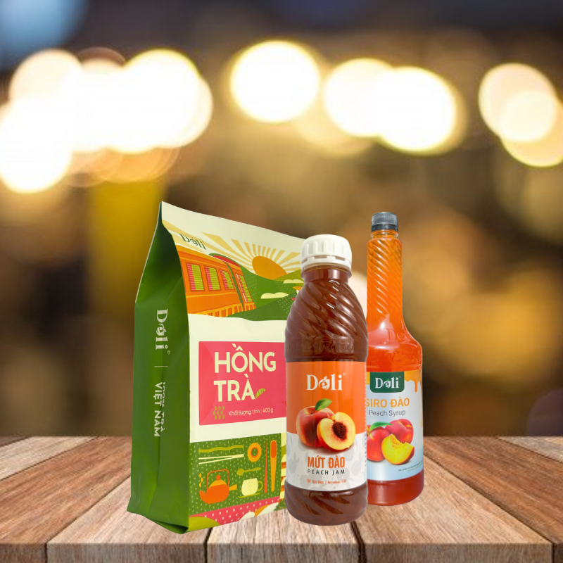 Combo Trà Đào [Hồng trà 400gr + Siro đào 1lít + Mứt đào 1lít Déli]