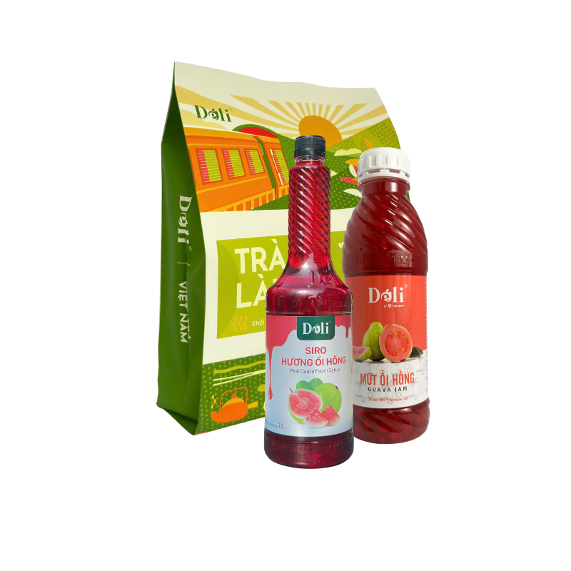 Combo Trà Ổi Hồng [Trà Lài 400gr + Mứt Ổi 1L + Siro Ổi 1L Déli]