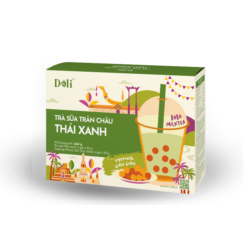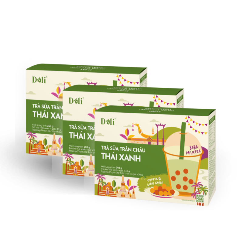 Tuy nhiên, không phải ai cũng có thời gian và điều kiện để nấu được một ly trà sữa Thái đúng vị. Vì vậy, Déli đã nghiên cứu và cho ra đời sản phẩm Trà Sữa Trân Châu Thái Xanh pha sẵn – giải pháp tiện lợi cho cả người yêu trà sữa tại nhà và chủ quán F&B đang tìm kiếm công thức chuẩn, nhanh và dễ mở rộng.