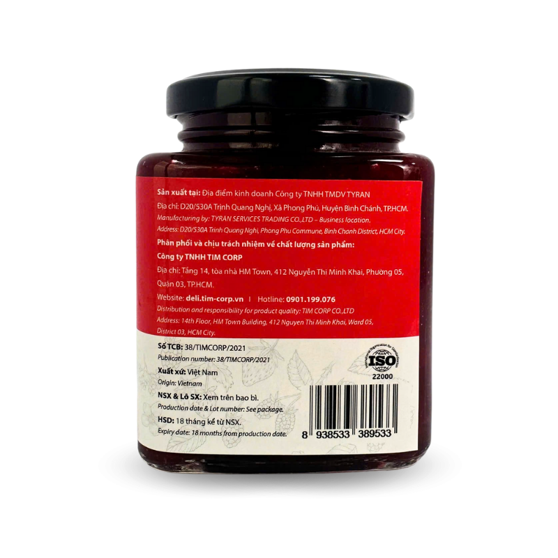 Sản xuất tại: Công ty TNHH TMDV TYRAN – D20/530 Trịnh Quang Nghị, xã Bình Hưng, Thành phố Hồ Chí Minh, Việt Nam