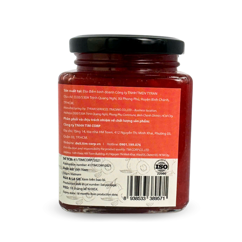 • Sản xuất tại: Công ty TNHH TMDV TYRAN – D20/530 Trịnh Quang Nghị, xã Bình Hưng, Thành phố Hồ Chí Minh, Việt Nam